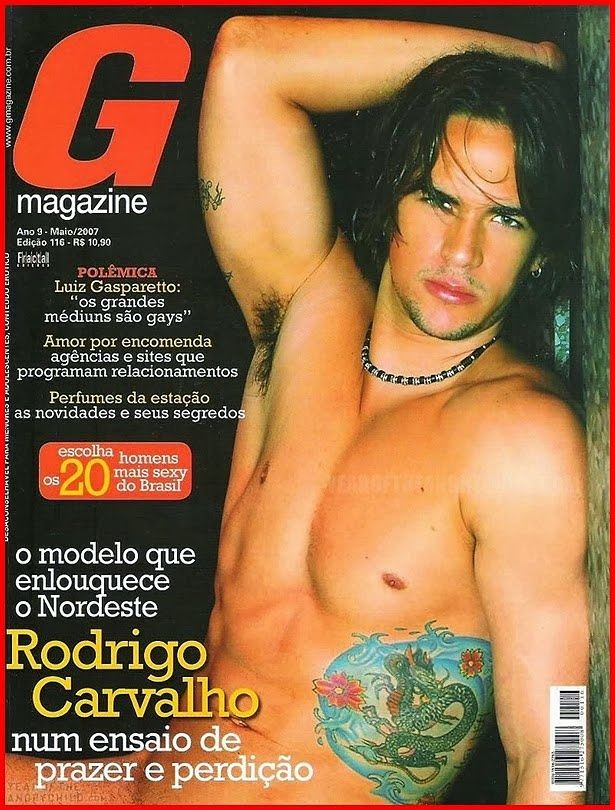Protagonista del Big Brother Brasil 11, Rodrigo Carvalho ha posato senza veli per tre imperdibili servizi fotografici pubblicati da G Magazine nel marzo del 2007, nel settembre del 2008 e nel febbraio del 2011.