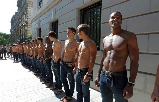 Per promuovere l'inaugurazione del loro nuovo punto vendita di Parigi (che troverà spazio negli Champs Élysées), la Abercrombie & Fitch ha pensato di organizzare un evento abbastanza particolare: ha ingaggiato ben 101 modelli (tutti rigorosamente dal fisico scolpito e a pezzo nudo) e li ha mandati in giro per le vie cittadine.