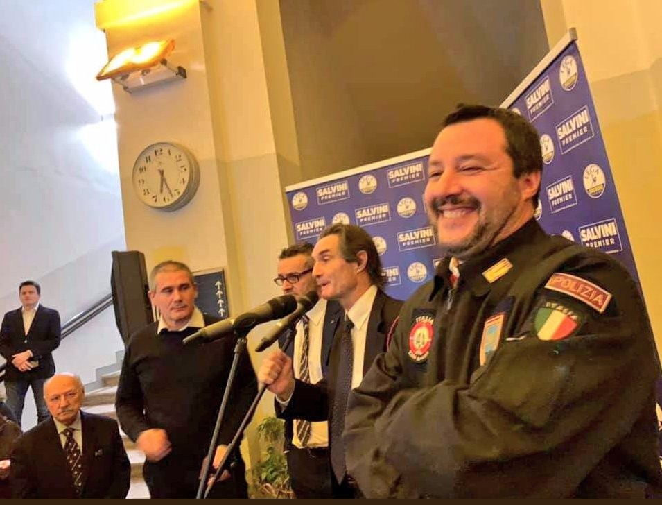 Eppure lui se ne vanta, parlandone con fierezza. E ride. Ride sguaiatamente, esattamente come rideva gaiamente mentre doveva ricevere una salma e lui si era presentato travestito da poliziotto manco fosse carnevale. E dietro di lui non c'erano simboli del Viminale, solo un fondale griffato Lega con il suo nome scritto bello in grande, sia mai che non possa farsi campagna elettorale a spese dei cittadini.