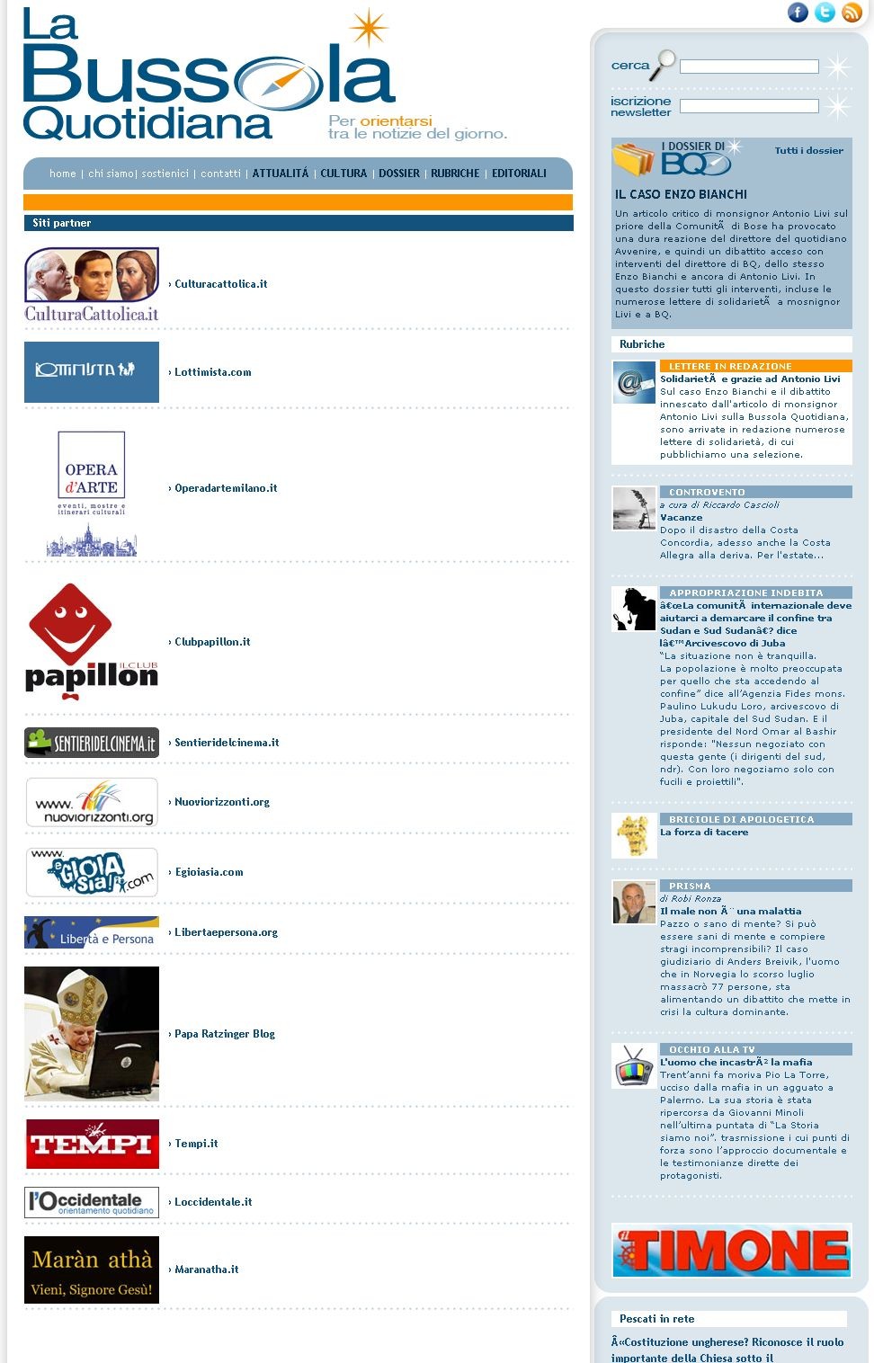 La redazione de La Bussola Quotidiana era formata da quattro personaggi e le loro presentazioni mostravano dettagli che oggi vengono generalmente occultati. Ad esempio Riccardo Cascioli si dichiarava «fellow del Catholic Family and Human Rights Institute», ossia membro di quel C-Fam che il Southern Poverty Law Center classifica come un gruppo di odio anti-lgbt anche in virtù del loro cieco supporto all'attivista anti-gay Scott Lively.