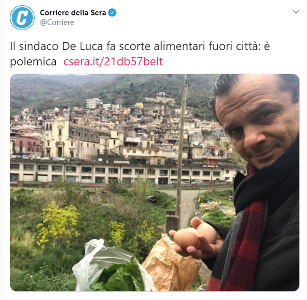 Mentre noi cittadini veniamo obbligati a dover andare al supermercato più vicino a casa, il sindaco-sceriffo di Messina si è concesso trenta chilometri di scampagnata per andare a comprarsi le uova.