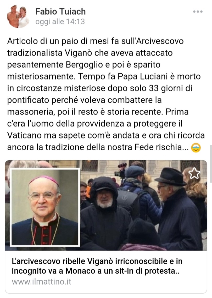 Tuiach sta forse sostenendo che Papa Francesco sia un assassino?