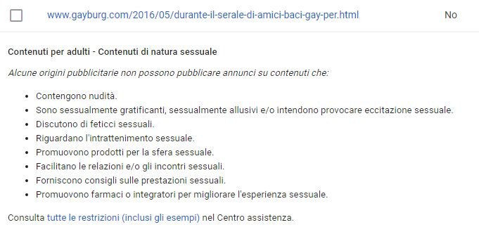 Il caso non pare isolato, dato che Google ha avuto da ridire anche contro un nostro post del 2013 in cui parlavamo di un bacio tra due ragazzi all'interno del reality show "The Valley" trasmesso da MTV:
