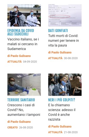 E per chi si domandasse cosa abbia scritto Gulisano per quel sito, troviamo elogi alla Lega, tesi politiche sul fatto che le regole sanitarie costituirebbero un "regime", tentativi di spaventare le persone riguardo ai vaccini, accuse il governo di gonfiare i numeri e pure battutacce sul razzismo: