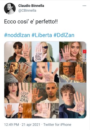 Non sappiamo se il signor Claudio Binella si masturbi sulle fotografie di Pillon o su quelle dei bambini morti sulle coste di Lampedusa, ma sappiamo che si professa di estrema destra e che nel sui tempo libero difende i criminali che commettono reati d'odio modificando fotografie, diffamando onesti cittadini e attribuendo false affermazioni a persone finite nella rete della sua attività criminale. Parrebbe infatti di rilevanza penale il suo becero tentativo di imporre con la violenza un falso messaggio attribuito a dei soggetti giuridici senza il loro consenso. Così come noi non possiamo alterare le sue fotografie e scrivergli frasi in fronte quello che vogliamo, lui non lo può fare con le fotografie altrui. E non serve alcun ddl Zan per ritenere criminale il suo atto violento.