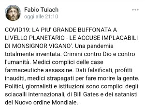 CasaPond e il consigliere fascista Fabio Tuiach elogiano monsignor Viganò per il suo contributo al negazionismo. Sui social russi, il camerata triestino riassume il suo pensiero scrivendo: