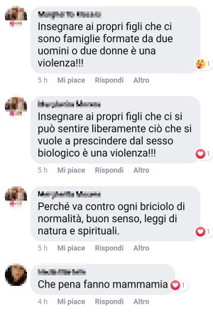 Tra i commenti emerge tutta la rabbia dei loro seguaci. Dicono che l'omofobia è bella, che la discriminazione piaccia a Gesù e che loro hanno deciso che cosa debba pensare Dio:
