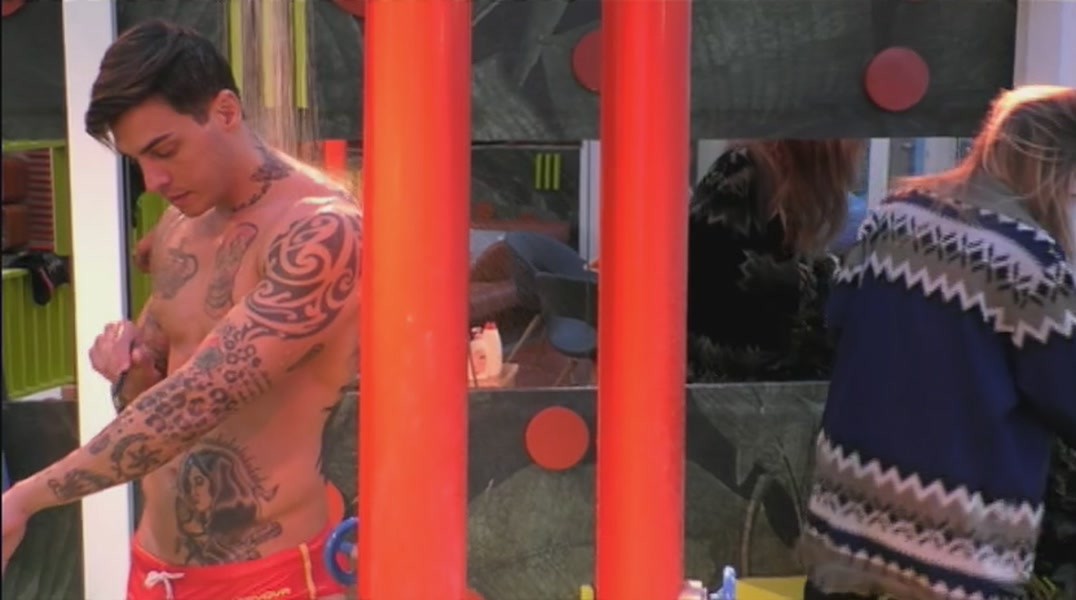 Poi, come se nulla fosse, si è anche sfilato il suo costumino rosso e, ammesso che la regia non ci abbai fatto sfuggire qualche passaggio, avrebbe gironzolato per casa con addosso solo l'accappatoio, magari con parte del pubblico che ha suspicato che la legatura cedesse. Poi, sempre senza che la regia lo inquadrasse, lo abbiamo ritrovato al fianco di Manuel, ovviamente con la zip della felpa rigorosamente aperta e i pettorali in bella mostra.