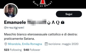 Il signor Emanuele è un aiuto pizzaiolo della provincia di Reggio Emilia, tristemente noto sui social network per la violenza e i continui insulti che è solito elargire in calce ai messaggi di Adinolfi e di Pillon. Ovviamente no-vax, omofobo e simpatizzante dell'estrema destra, ha così deciso di esultare per la cancellazione dei diritti delle donne da parte dei giudici di Trump: