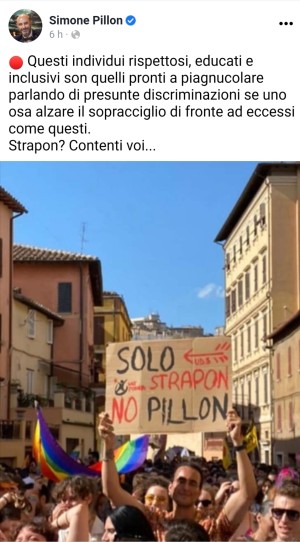 Intanto i suoi proseliti mostrano tutta la lo inclusione dicendo al loro amato Pillon che i gay sarebbero «feccia», «animali», «malati», «depravati», «fr*ci» e tutta la solita gamma di insulti gratuiti a cui lui li ha aizzati: