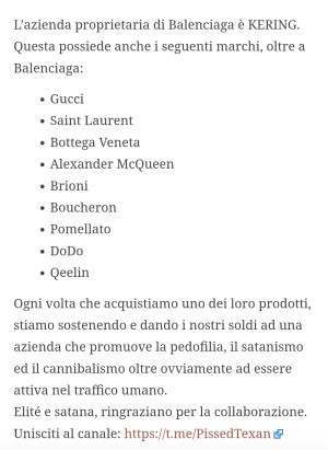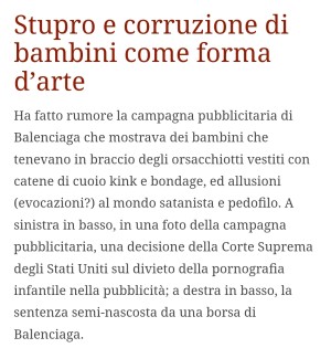 Le teoria di Blondet è che Balenciaga inviti lo «stupro» dei bambini: