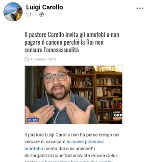 Il pastore Carollo invita gli omofobi a non pagare il canone perché la Rai non censura l'omosessualità