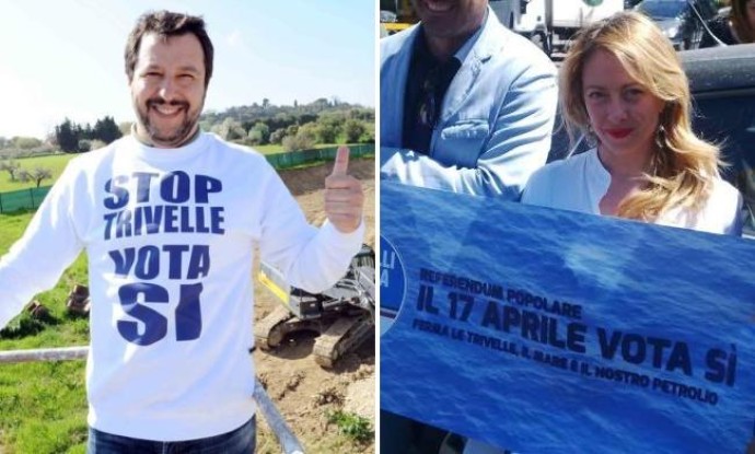 Meloni e Salvini votano per riattivare le trivelle fermate da Meloni e Salvini