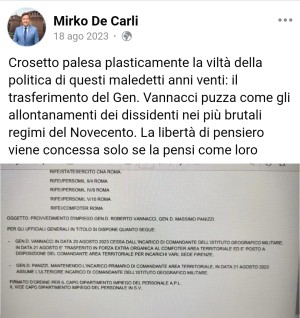 Sarà che i discorsi d'odio di Vannacci assomigliano molto a quello di Adinolfi. Entrambi sono omofobi, entrambi hanno problemi con il colore della pelle della Egonu ed entrambi risultano simpatizzanti del dittatore russo che manda i suoi militari di leva a stuprare bambine di tre anni. Ma paragonare al fascismo la sospensione di un alto esponente delle istituzioni che usa il suo ruolo pubblico per calpestare i nostri principi costituzionali non pare sinceramente un "regime fascista" come sostiene lui. Ed è opinabile anche il suo sostenere che odio e discriminazione vadano considerati "libertà di espressione" da garantire a chi discrimina