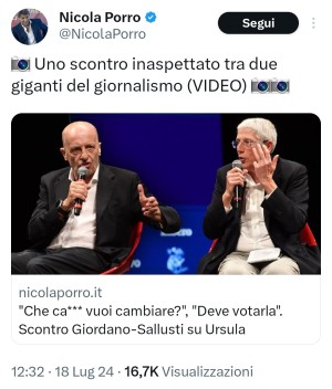 Intanto Nicola Porro sostiene che Sallusti e Giordano sarebbero «giganti del giornalismo».