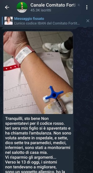 Fortunatamente la sua storia parrebbe falsa, dato che nella fotografia si vede il braccialetto del pronto soccorso di Cremona e non ci risulta che i medici del Servizio Sanitario Nazionale portino quei braccialetti a casa dei pazienti no-vax che chiedono soldi per combattere la scienza medica.