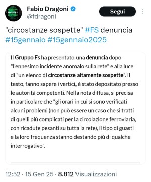 Vogliono sabotare il povero Salvini. È questa la tesi sostenuta da Fabio Dragoni nel tentativo di negare le responsabilità del ministro dei trasporti davanti ai disservizi pressoché quotidiani che si registrano su tutta la rete ferroviaria: