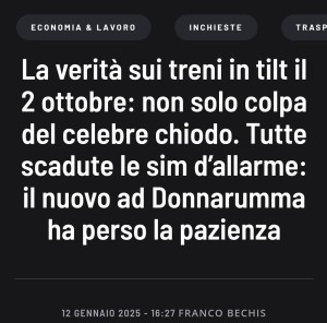 Si è poi scoperto che il blackout di Roma Termini non è stata colpa di un operaio che ha piantato un chiodo, così sostenuto dal ministro, ma il fatto che le sim delle centraline erano scadute a causa dell'assenza di credito: