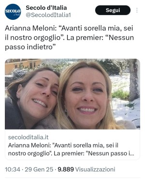 Giorgia Meloni ama fare la vittima, sostenendo implicitamente che a dover essere indagati dovrebbero essere solamente i tanti cittadini che hanno ricevuto querele dai suoi ministri. Anche perché i cittadini potranno poi vincere, ma il semplice fatto che le spese legali saranno comunque a loro carico è sufficiente ad intimidirli e a limitare la loro libertà di pensiero.
