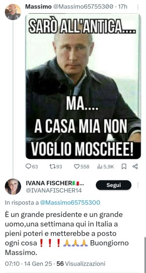 Ma se il signor Cognini ha schifo della nostra cultura e della nostra Costituzione (che prevede la libertà di culto), perché non è coerente con le sue idee e rinuncia alla sua cittadinanza. Anzi, si metta in lista per essere deportazione in centro albanese della sua amatissima Meloni, così da essere messo in attesa di essere ricollocato un paese che esprima i suoi pensieri dittatoriali.