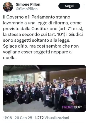 L'impressione è che il leghista Simone Pillon sappia solo insultare. Oggi riserva le sue invettive alla magistratura, dicendo che dovrebbero stare in silenzio mentre il suo Salvini e la sua Meloni cercano di vandalizzare la Costituzione per arraffarsi pieni poteri: