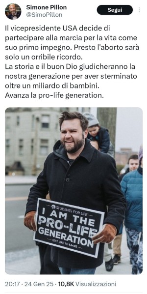 Pillon esulta anche perché il vicepresidente di Trump è favorevole ai fucili ma non al diritto di scelta delle donne. E così, da buon uomo di destra, le costringerà a partorire contro il loro volere: