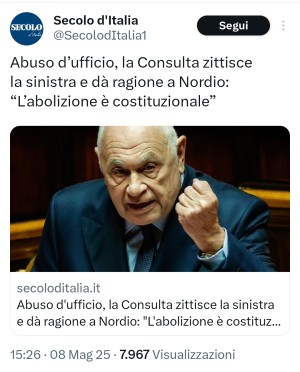 Dato che ormai non fanno più giornalismo ma solo propaganda, sostengono che debba stare zitto chi non condivide le decisioni dei loro protetti. Dovete obbedire, mica pensare e chiedere legalità a chi vuole difendere i delinquenti della propria casta!