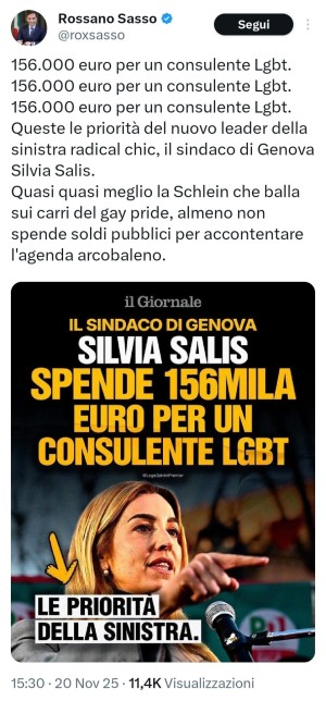 peccato che 153 mila euro lordi in 3 anni (lordi) siano circa 32/33 mila euro netti all’anno. Si tratta di meno di 2700 euro al mese, che certamente non è un enorme compendio per un consulente nominato dal sindaco. Ancor più se la critica arriva da parlamentari che di intascano 10 o 20mila ero al mese, magari per starsene sui social ad odiare i mussulmani come la Sardone.
