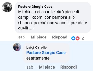 Il pastore evangelico Luigi Carollo si dice "amareggiato" davanti a due immigrati che non vengono lasciati liberi di violare le leggi italiane e di poter costringere i figli a crescere in una baracca fatiscente, senza acqua o corrente elettrica. E manco gli possono negare cure mediche, istruzione e contatti con coetanei, come lui sostiene che farebbe volentieri con i suoi figli se avesse un appezzamento di terra.