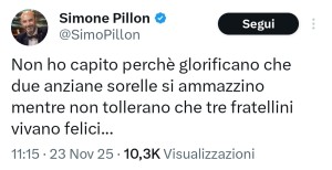 Il leghista Simone Pillon appare sgradevole in quasi tutto ciò che scrive. Ma oggi pare essersi superato riservando insulti alla libertà di scelta delle gemelle Kesler in ode a genitori che tenevano i figli reclusi in una baracca e gli impedivano di andare a scuola.