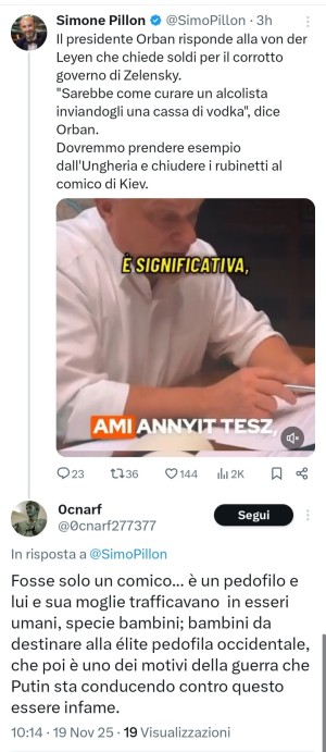 Dopo Vannacci, anche Pillon chiede che l'Italia contribuisca agli interessi di Mosca e aiuti Putin a occupare l'Ucraina. L'ex senatore leghista ci spiega che l'idea sarebbe del suo adoratissimo Orban, ossia di quell'anti-patriota di estrema destra che cerca di distruggere l'Unione europea insieme a Salvini. Peccato che Orban non faccia che chiedere soldi all'Europa e non paia volersi occupare della corruzione che spopola nel suo Paese.