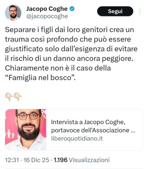 Jacopo Coghe non è uno psicologo, ma solo il portavoce di un'organizzazione forzanovista di estrema destra che ha trascorso anni a promuovere la Russia di Putin. Non è dunque chiaro perché Libero lo abbia convocato come fantomatico "esperto" che dovrebbe invalidare il parere scientifico degli assistenti sociali in difesa dei due immigrati che non mandavano i figli a scuola nel plauso di Salvini: