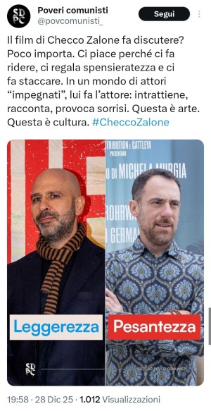 Mon va meglio con i gruppi di propaganda populidta, i quali sostengono che Zalone farebbe "cultura" e "arte":