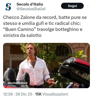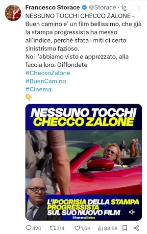 La stampa di estrema destra sostiene che Checco Zalone sia espressione del livello culturale degli elettori Giorgia Meloni, a cui va bene spendere miliardi in campi di deportazione purché li di faccia ridere con rutti e insulti. Anzi, Italo Bocchino arriva persino a sostenere che fantomatici "gufi" tifassero contro il suo nuovo film.