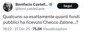 La firma di Belpietro pensa davvero che un film commerciale, privo di qualsivoglia valore culturale, dovesse essere pagato con i nostri soldi? Davvero non capisce che i fondi servono proprio a premettere opere di arricchimento che per loro natura non avrebbero un pubblico pagante altrettanto nutrito come come le commedie natalizie a base di rutti e pernacchie?