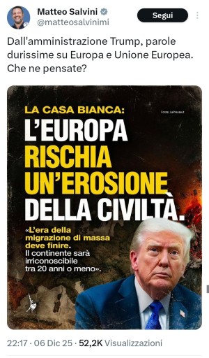 Salvini vorrebbe farsi dare lezioni di civiltà da Donald Trump?