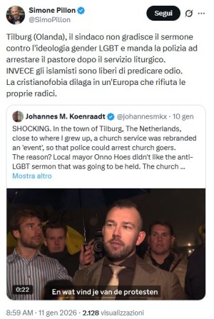 Pillon inquadra l'episodio come un esempio di fantomatica "cristianofobia" in Europa, contrapponendolo alla presunta libertà di predicatori islamici di diffondere odio. Ma le fonti indicano che il divieto e l'arresto derivano principalmente da preoccupazioni per la sicurezza pubblica legate alle proteste, non direttamente dal contenuto del sermone.