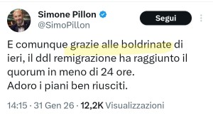 Il leghista Simone Pillon si fa sponsor delle deportazioni razziali proposte dai gruppi neofascisti sostenuti dalla Lega.