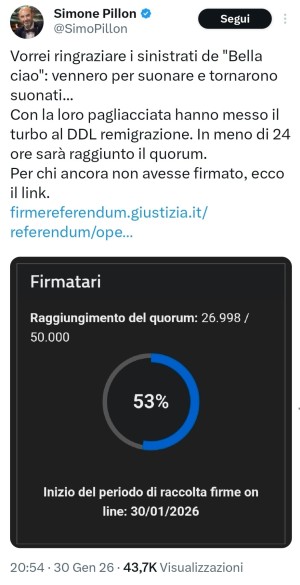 Secondo lui, è in odio verso l'antifascismo che migliaia di razzisti starebbero firmando quell'abomininio.