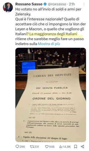 Basta armi, basta soldi per Zelensky. Anche perchè continuare a inviare armi e soldi non aiuta di certo il processo di pace e la pace ottenuta oggi sarà sempre meglio di quella di domani, perchè più passano i giorni più le condizioni per raggiungerla saranno peggiori per gli Ucraini. Bene, io la penso come la maggioranza degli Italiani: la politica dell'Unione europea è stata fallimentare e gli ultimi 90 miliardi di euro stanziati per Zelensky non ci faranno certo raggiungere la pace.