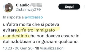 Considerando che la destra continua a promettere deportazioni e leggi razziali, sono loro i primi a trarre beneficio dal clima di insicurezza prodotto dal loro stesso governo. A pensar male si fa peccato, ma spesso ci si azzecca, anche perché la politica della paura è il rifugio di chi non ha soluzioni.