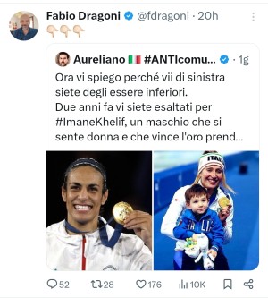 Insomma, siamo davanti ad una negazione die fatti asservita al loro interesse. Ma d'altronde la destra populista è quella che ci propina un Fabio Dragoni che parrebbe pronto a rilanciare post di hater di estrema destra capaci di sostenere che loro sarebbero "superiori" agli altri perché capaci di paragoni di raro squallore morale come questo: