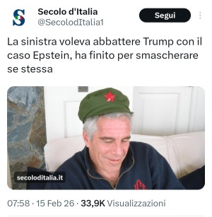 Dopo Pillon, anche Il Secolo d'Italia prova ad usare Epstein contro la sinistra