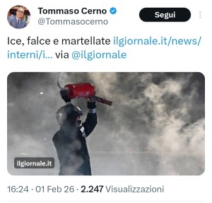 E chi glielo ha detto che quei violenti fossero di sinistra e non infiltrati di destra, magati mandati a creare disordini per sostenere le proposte repressive del loro governo? Non a caso, Tommaso Cerno già inneggia ad un'ICE italiana che possa andare in giro ad ammazzare la gente: