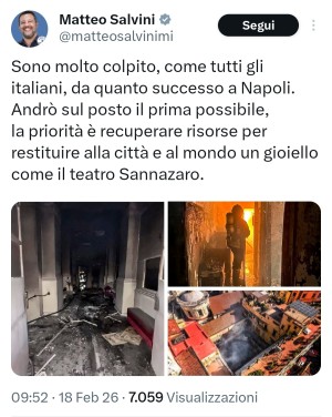 In fiamme il teatro Sannazaro. Salvini promette soldi pubblici ai proprietari privati?
