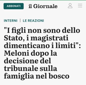 Giorgia Meloni non pare preoccuparsi per le bambine uccide dal suo Netanyahu o dei bambini palestinesi vittima di genocidio. A preoccuparla è che a due immigrati venga chiesto il rispetto di quanto previsto nel suo decreto Caiviani.